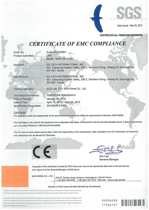 SGS Certificate Of EMC Compliance > Certificate