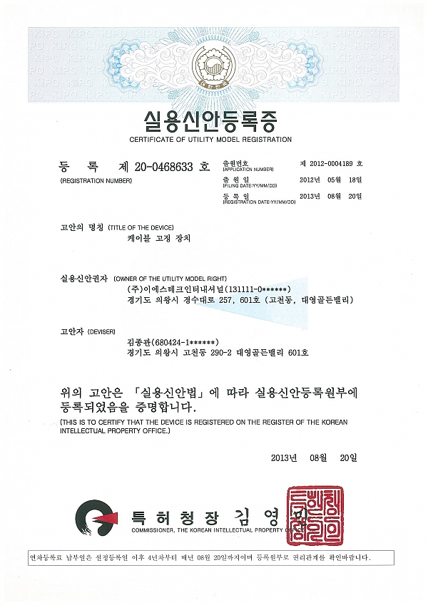 Certificate of Utility model Registration > Certificate